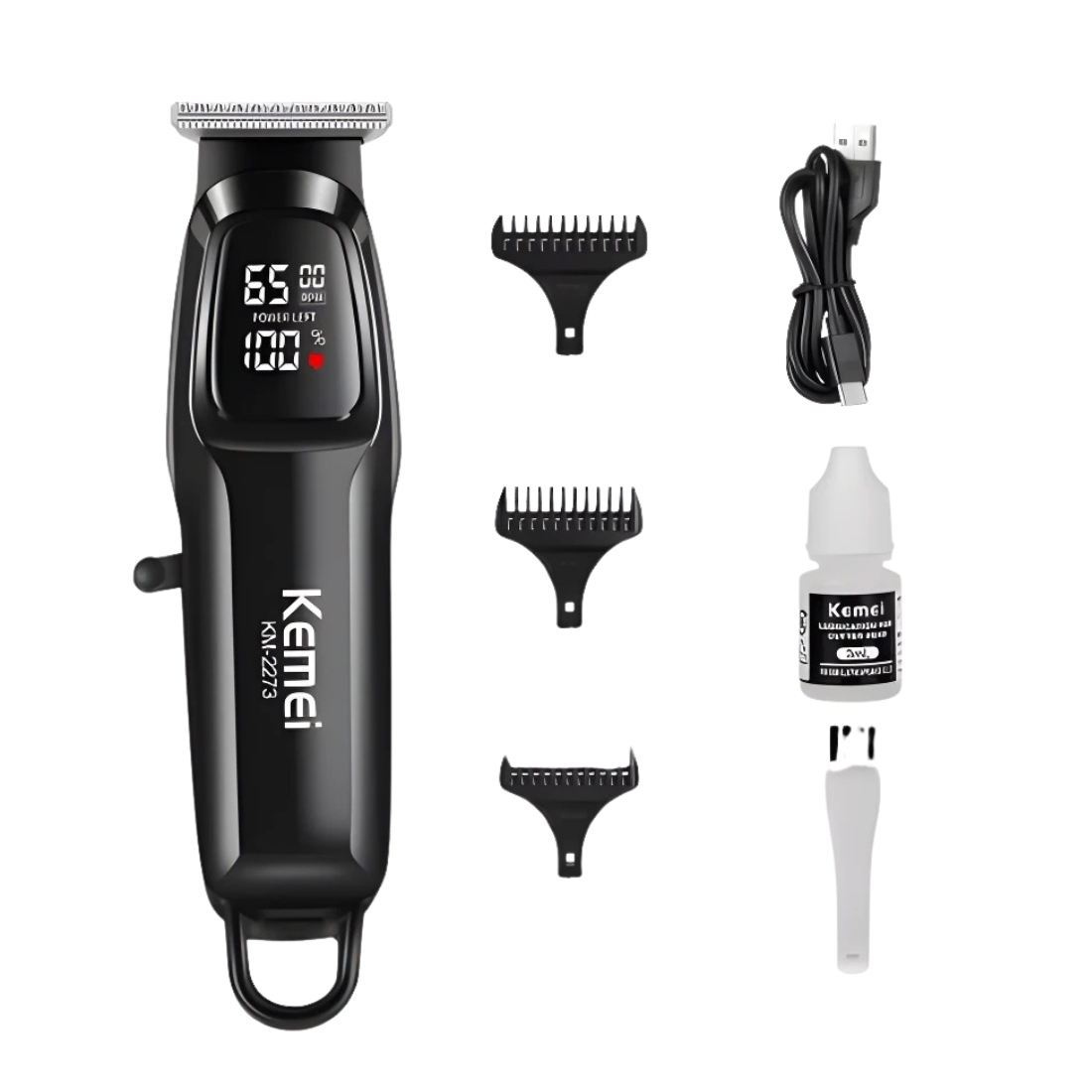 The Kemei KM-2273 Professional Hair Trimmer is the ultimate at-home grooming tool, designed for precision trimming, comfort, and long-lasting performance. Whether shaping your beard, trimming hair, or styling sideburns, this cordless trimmer delivers up to 270 minutes of runtime on a single charge, thanks to its 1800mAh lithium battery.
